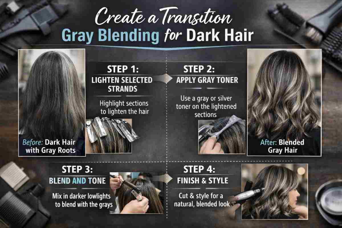 For people with dark hair, this transition can feel more challenging because the contrast between deep brown or black hair and gray strands is more noticeable. However, modern salon techniques such as balayage, highlights, and toning have made it possible to achieve a seamless, elegant blend. This guide explains everything you need to know about transition gray blending for dark hair, including techniques, costs, timelines, and maintenance strategies.
